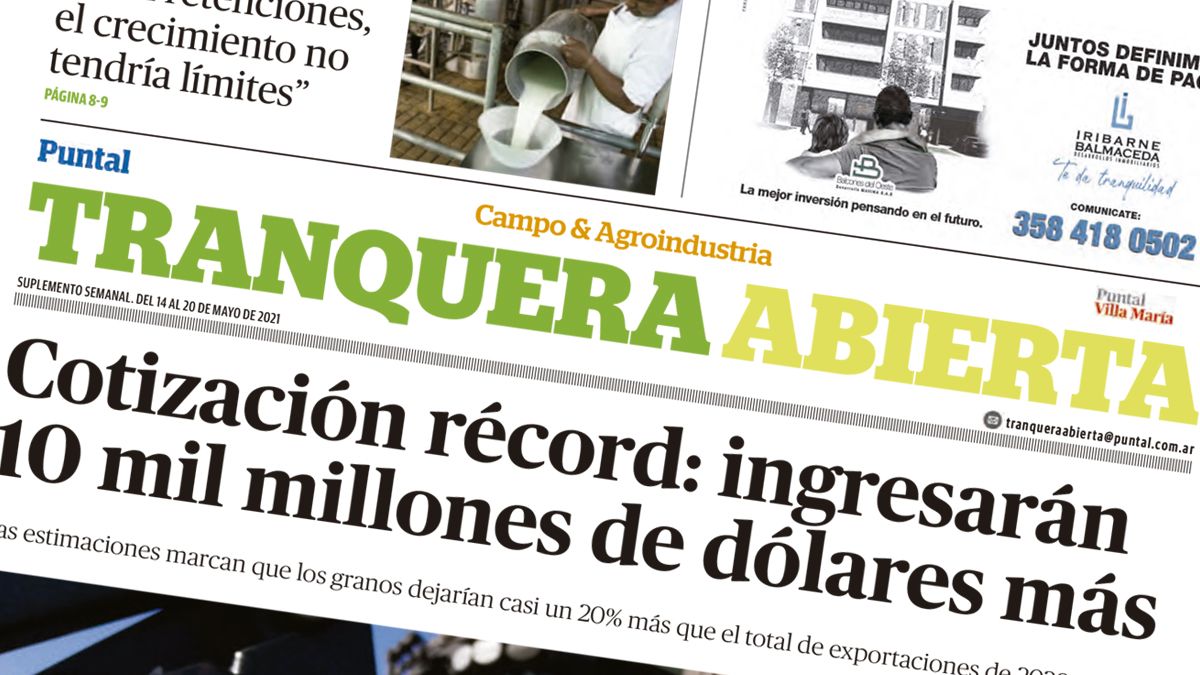 El suplemento Tranquera Abierta de este viernes destaca entre sus títulos principales la cotización récord de los granos a nivel internacional que permitirían el ingreso de 10 mil millones de dolares más a la Argentina. En paralelo las cosechas proyectan excelentes resultados, y Córdoba es protagonista en este sentido.