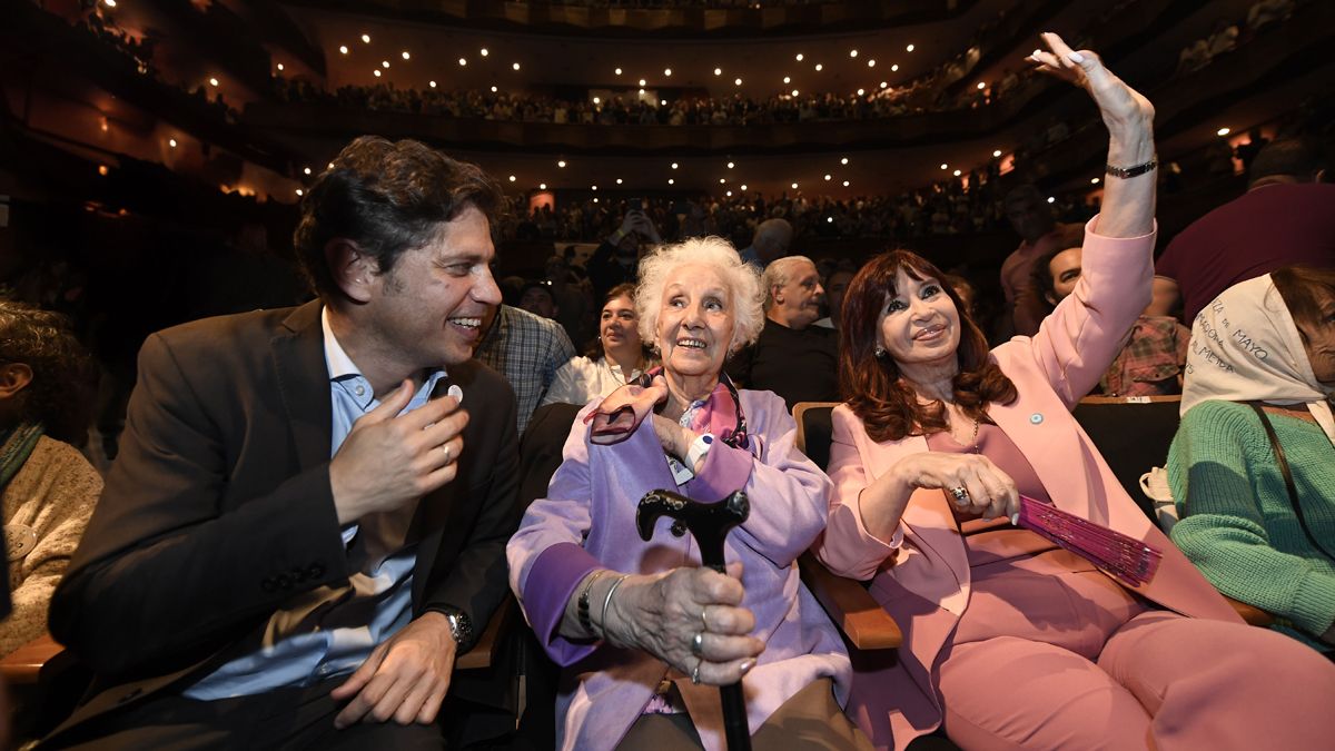a ex mandataria nacional Cristina Kirchner y el gobernador bonaerense, Axel Kicillof, se reencontraron hoy en La Plata para compartir un acto por el 47 aniversario de la asociación Abuelas de Plaza de Mayo
