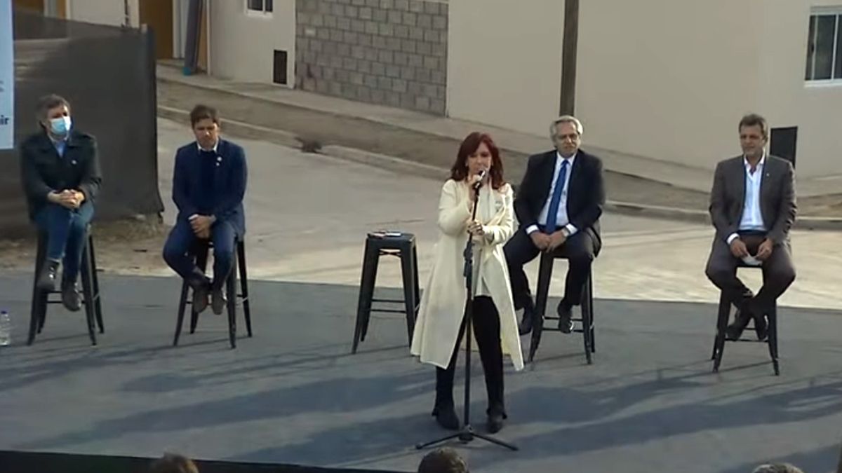 En medio de las tensiones por las fotos del cumpleaños celebrado en Olivos medio del aislamiento estricto, en julio de 2020, la vicepresidenta Cristina Kirchner y el presidente Alberto Fernández compartieron un acto en Avellaneda para realizar una entrega de viviendas.