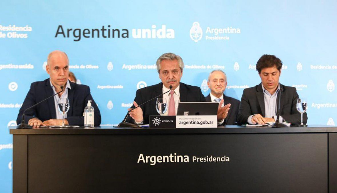 "Tantas veces que buscamos epopeyas, esta es una epopeya del pueblo argentino. No debemos perder, de ningún modo, el esfuerzo hecho. Lo han dicho los dos gobernadores", señaló el Presidente, al referirse a Kicillof y Rodríguez Larreta, con quienes se reunió momentos antes del anuncio, para ultimar los detalles de cómo será la cuarentena a partir del lunes en la Capital Federal y la provincia de Buenos Aires.