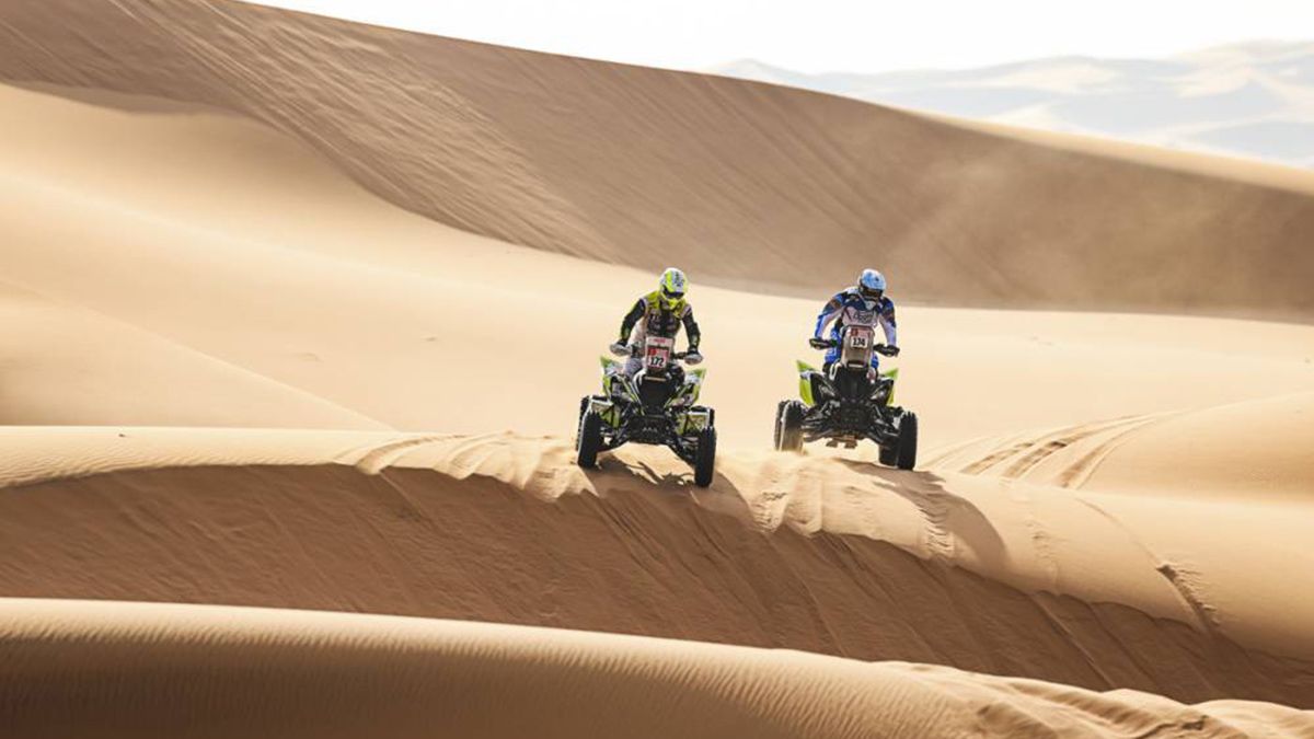 En cuatriciclos, los dos primeros en la ruta son el francés Alexandre Giroud (Yamaha Raptor), que marcó su paso por el punto D en 6h.43m.46s. y el argentino Manuel Andújar (Yamaha Raptor) lo escolta de cerca, a 2m.14s. en el mismo punto. El tercero en el camino y los relojes es el brasileño Marcelo Medeiros (Yamaha Raptor), dos waypoint menos cumplidos, a 10m.59s.