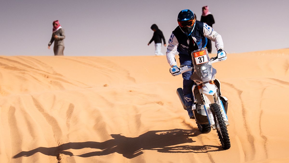 En la suma de tiempos lidera Rally 2 Preston Campbell (Honda) con 26h.12m.04s.; 25º Juan Santiago Rostan (KTM) a 5h.25m.25s. y 37º Leonardo Cola (KTM) a 7h.42m.36s.