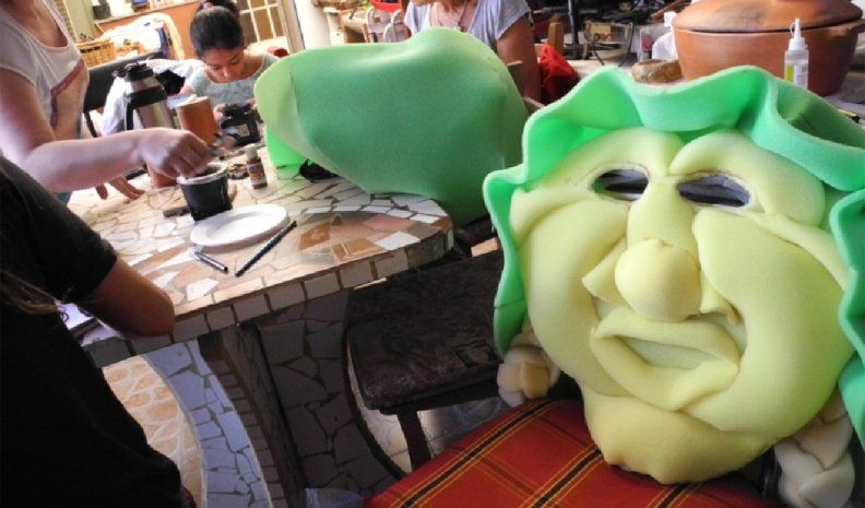 En una de las habitaciones de su casa, las mesas están ocupadas por grandes paños de goma espuma. Falta una semana para viajar a las sierras y hay un grupo de mujeres que se puso al hombro la tarea de armar los disfraces que utilizarán para el desfile en la apertura del sábado 26.