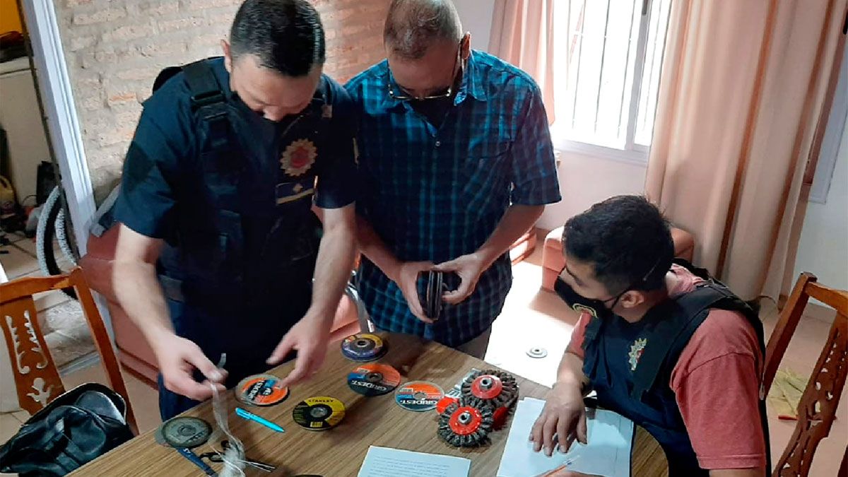 En la vivienda del trabajador, de 40 años, los policías secuestraron 173 discos de corte, 11 discos de desgaste, 2 flappers para amoladora, 3 discos cepillos de acero, 11 pares de guantes de cuero y uno de hilo con puntos azules, se informó.