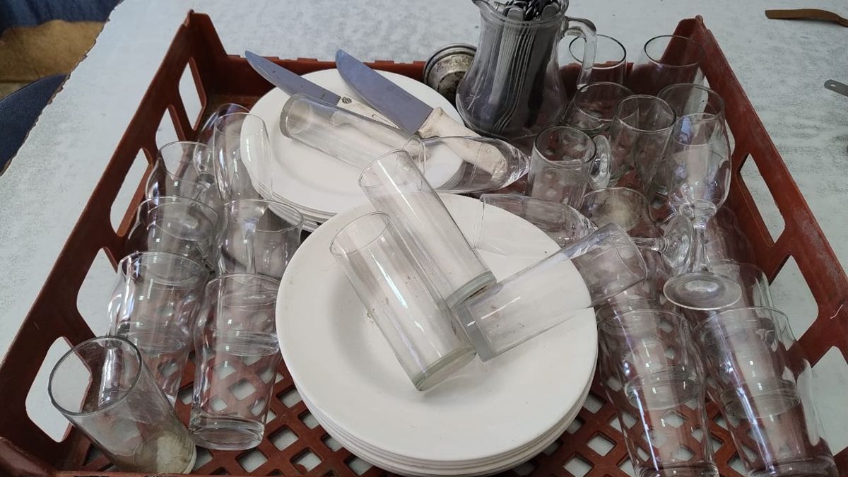 En el lugar se secuestraron dos bandejas de mozo, quince platos de cerámica, diecisiete juegos de cubiertos, una pinza, una jarra de vidrio, dos ceniceros, dos cuchillas, cinco copas y veintitrés vasos, entre otros elementos.
