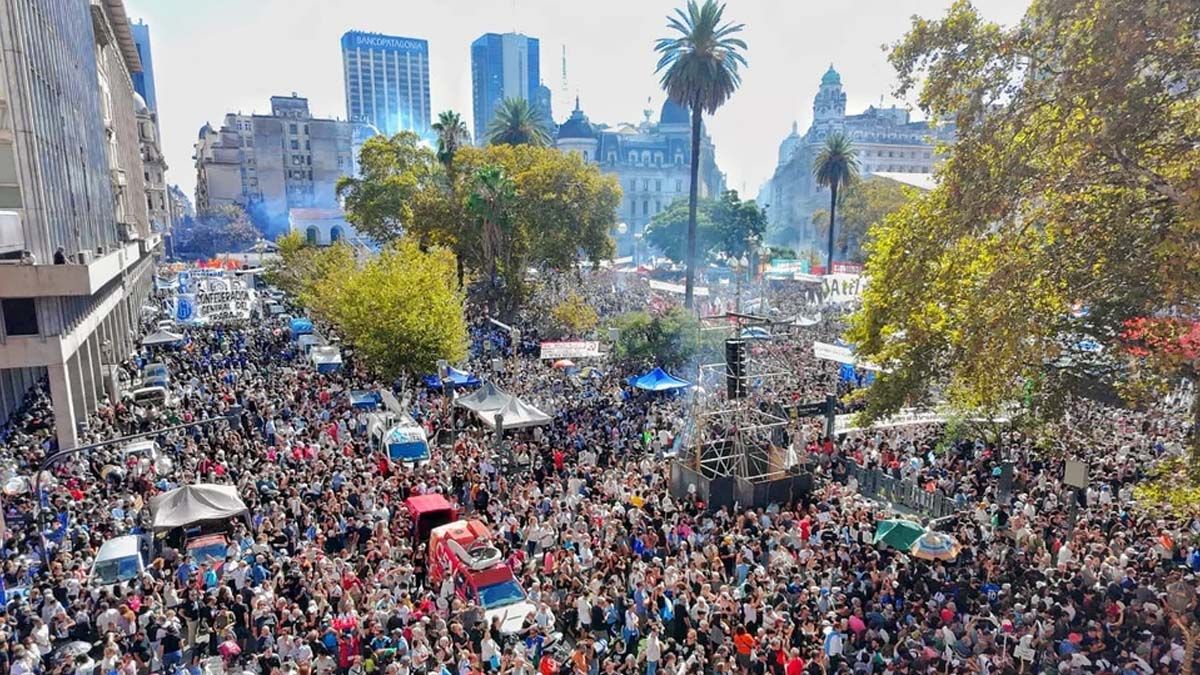 "Estamos juntos nuevamente en esta histórica plaza y en todas las del país con profunda convicción para afirmar que la memoria se defiende luchando", manifestaron.