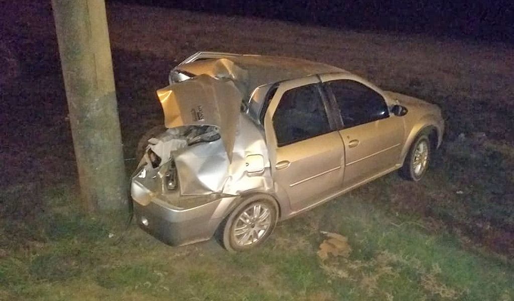 La mujer circulaba de norte a sur al mando de un Renault Logan gris cuando por causas a establecer despistó y terminó impactando contra un poste de luz.