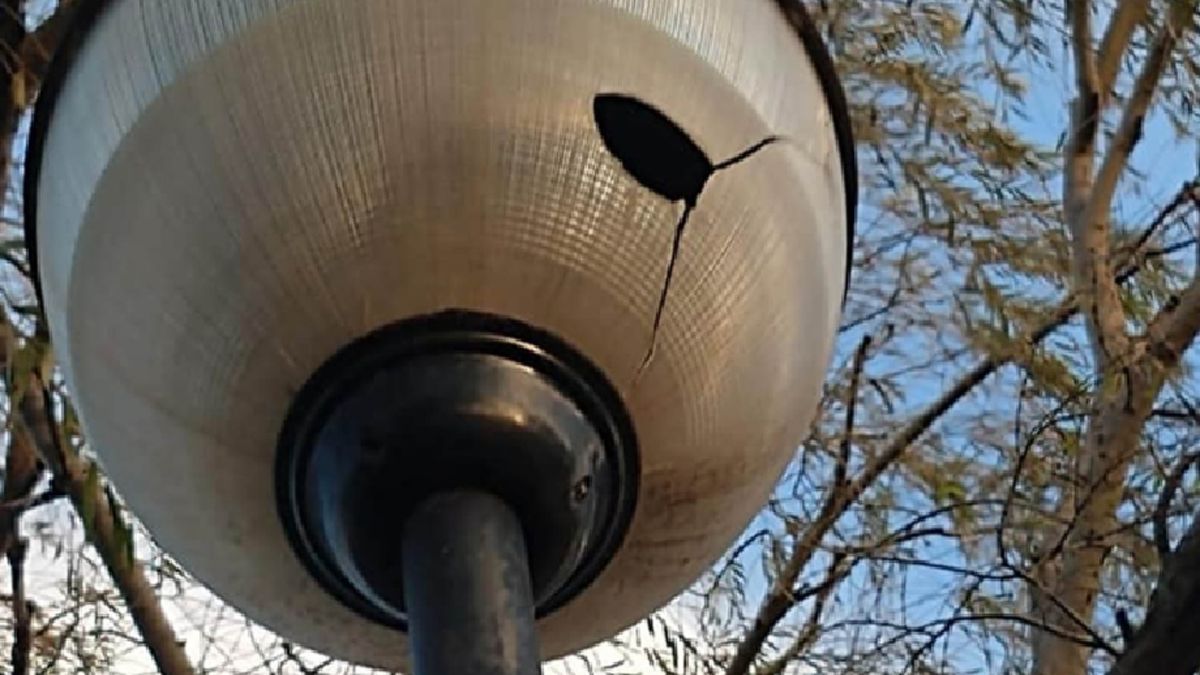 A través de su posteo en Facebook, publicó fotografías de los destrozos en varias luminarias que habían sido colocadas recientemente.