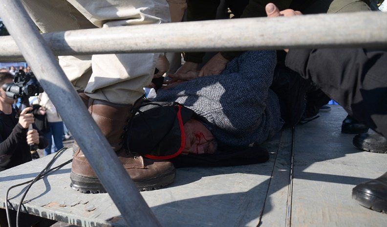 Según las primeras averiguaciones, el hombre se habría sumado al desfile, del que participan unas 5 mil personas de organizaciones civiles, y desde allí ganó el palco que ocupaban los conductores del acto oficial.