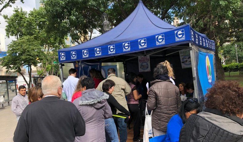 La Asociación Civil Nadia realiza controles de glucemia en la plaza Roca en el marco de una campaña de prevención por el Día Mundial de la Diabetes, que se rememora cada 14 de noviembre. Los análisis se llevan a cabo en una carpa de 8.30 a 19 horas.