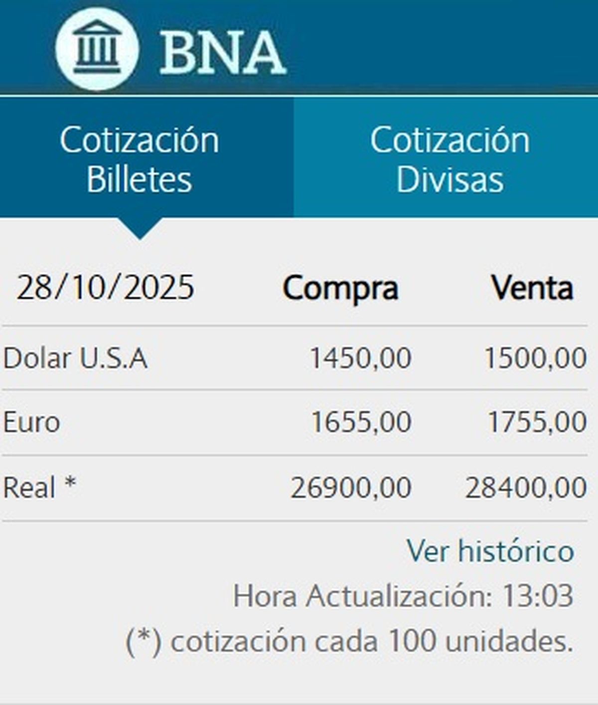 Nuevo ajuste del Banco Nación, ahora el dólar oficial va e $ 1.450 y $ 1.500 para ambas puntas.