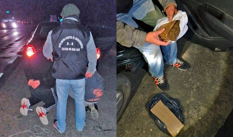 Dos hombres oriundos de Villa Mercedes, San Luis, fueron detenidos esta madrugada en el puesto de control instalado a la altura de Vizcacheras en momentos en que volvían desde el territorio cordobés hacia su ciudad de origen con dos kilos de marihuana compactada en el interior del su automóvil.