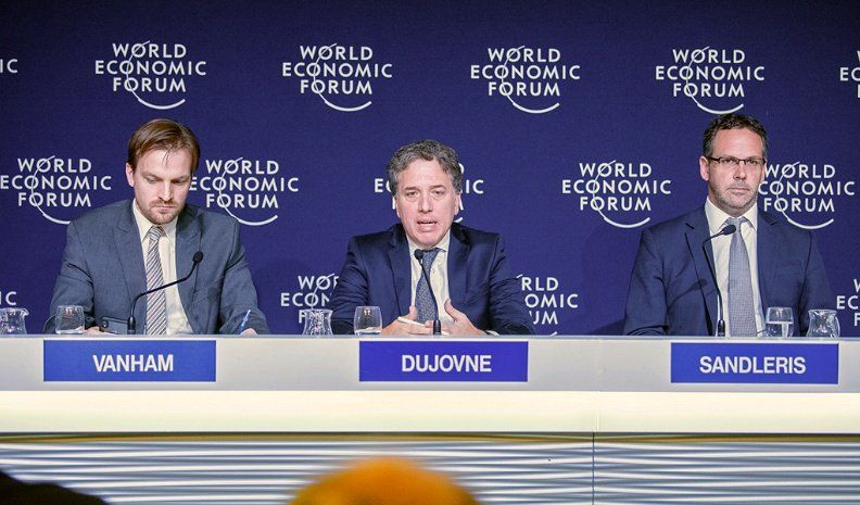 Al ofrecer una conferencia de prensa en Davos, donde participa del Foro Económico Mundial junto con el presidente del Banco Central, Guido Sandleris, Dujovne dijo que para 2019, "la Argentina tiene un pronóstico oficial, por el Presupuesto tratado en el Congreso en septiembre pasado, de una contracción de menos de 0,5% del PBI".