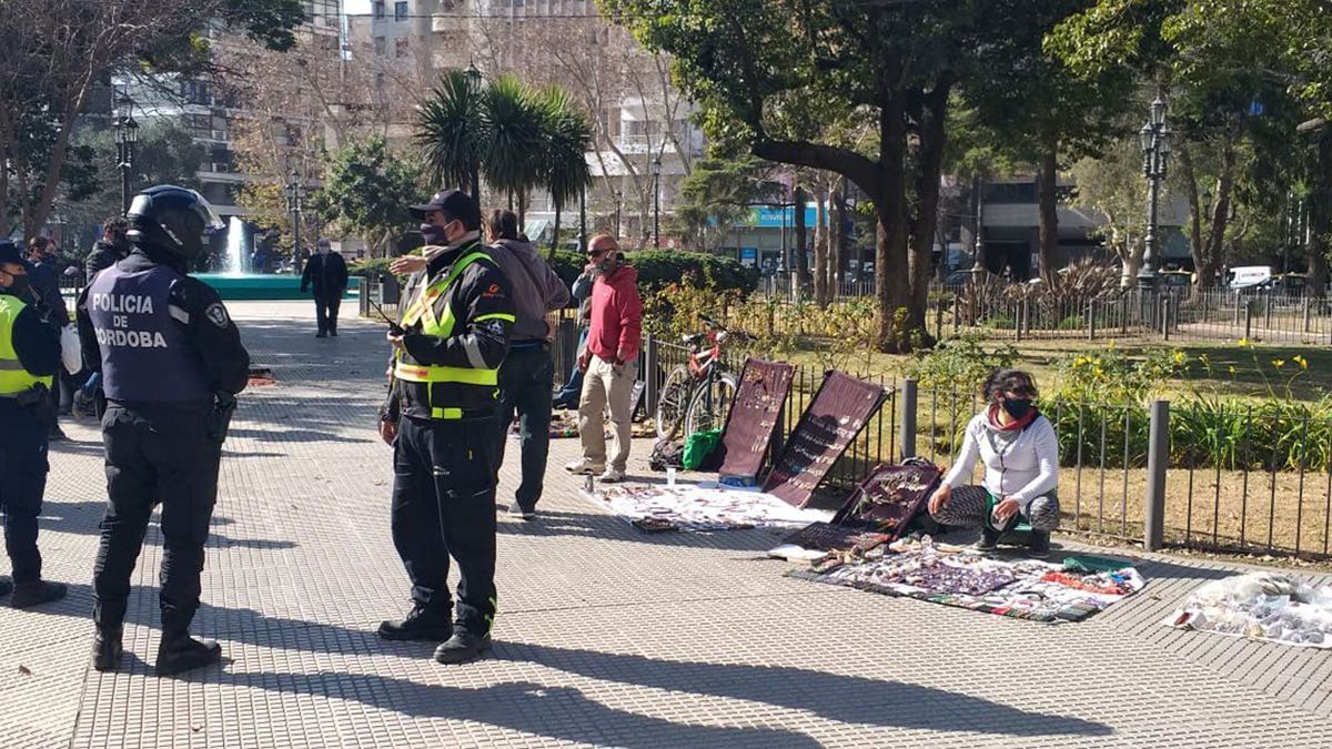 Un momento de tensión se vivió ayer en plaza Roca cuando agentes del Edecom y de la Policía de Córdoba intentaron desalojar a los artesanos que se asentaron en el principal espacio público de la ciudad.