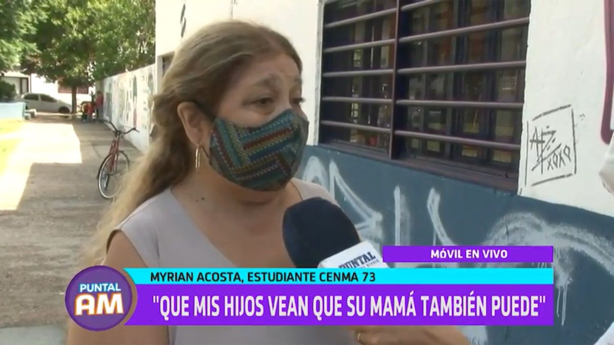Myrian Acosta, una estudiante del Cenma 73, contó su experiencia en medio de la expectativa por el egreso de este año. "Era una materia pendiente para mí, no pude terminar el secundario cuando debía terminarlo porque tuve que salir a trabajar para ayudar a mis papás, pero con el tiempo dije 'yo lo tengo que hacer'", compartió. "Fue una decisión rápida: vine, me anoté y empecé", subrayó.