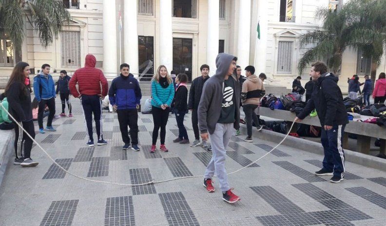 En un día clave, en el que paran y marchan docentes de todos los niveles educativos, alumnos de la carrera de Educación Física de la Universidad Nacional de Río Cuarto realizaron en la mañana de este miércoles una clase pública en defensa de la educación pública y las universidades.
