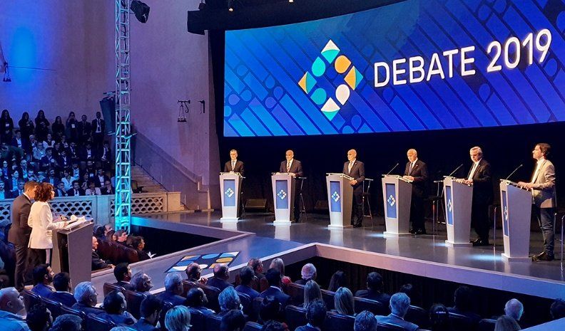 Los candidatos Mauricio Macri, Alberto Fernández, Roberto Lavagna, Nicolás del Caño, José Luis Espert y José Gómez Centurión protagonizan el primer debate presidencial obligatorio por ley en la historia de las elecciones argentinas.