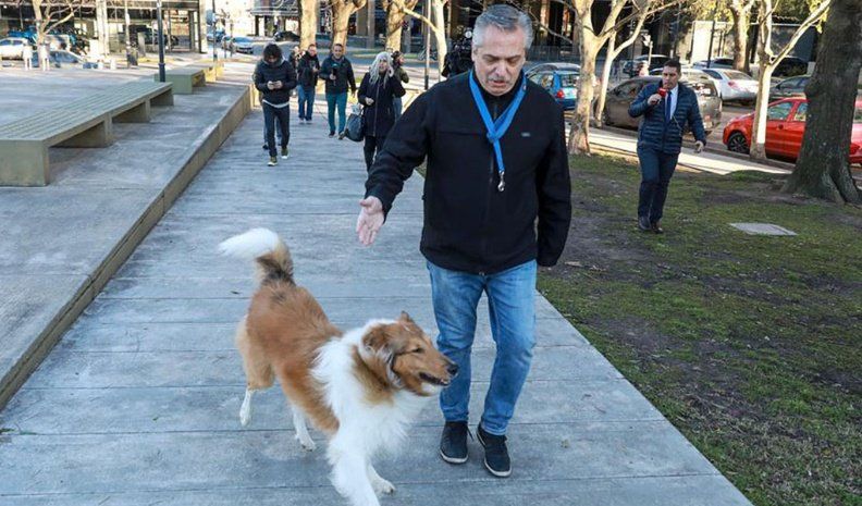 "Si ya saben que siempre paseo a Dylan a esta hora", le dijo Alberto Fernández a los periodistas de los distintos medios que lo esperaban en la puerta de su casa.
