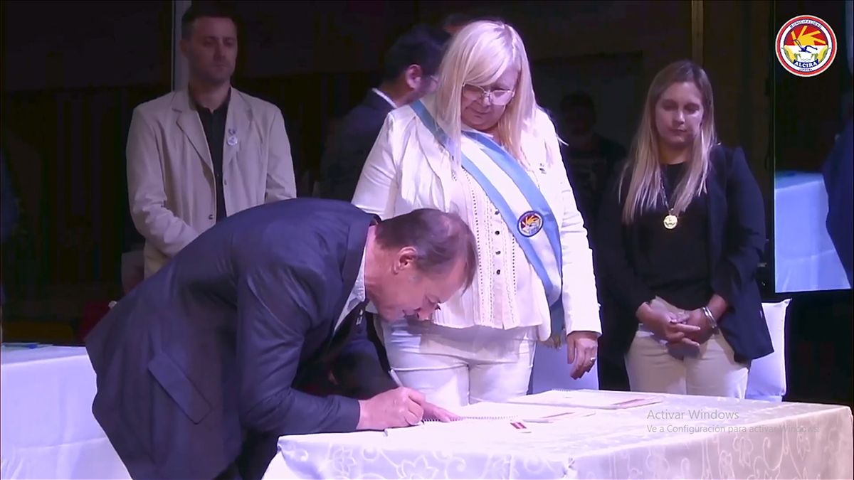Seguidamente, Fernando Gramaglia entregó la banda municipal a la referente del radicalismo y ambos procedieron a la firma para el traspaso de mando.