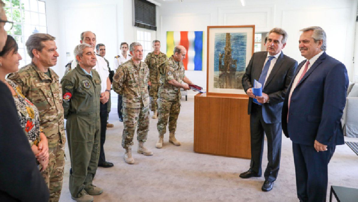 Acompañado por el ministro de Defensa, Agustín Rossi, el jefe de Estado destacó "el aporte de las Fuerzas Armadas y su colaboración respetando las leyes de Seguridad Interior y Defensa Nacional".