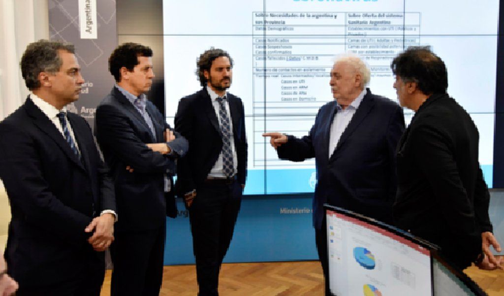 Ayer, el jefe de Gabinete, Santiago Cafiero, recorrió la sala de situación del Ministerio de Salud junto al titular de esa cartera, Ginés González García, y destacó la importancia estratégica de ese lugar porque "permite abordar tanto el progreso clínico de los casos como así también los avances de comportamiento".