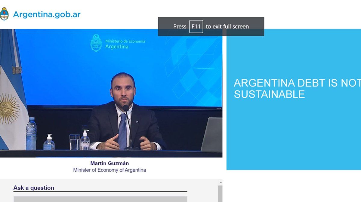 El ministro de Economía, Martín Guzmán, llamó ayer a bonistas a negociar la semana próxima sobre la deuda, mientras volvió a advertir que el nivel de vencimientos es "insostenible" y no hay lugar para más "reducción del gasto" público en la Argentina.