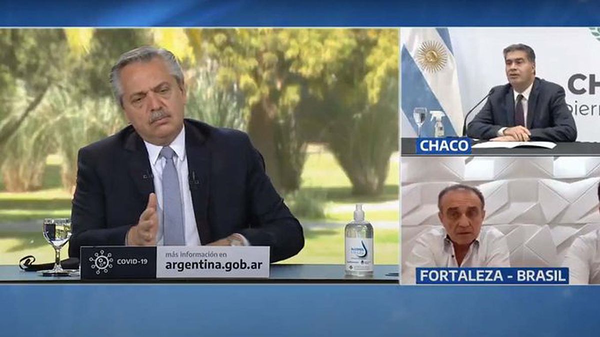 Desde la Quinta de Olivos, el mandatario participó por videoconferencia de un anuncio de inversiones en la industria textil por parte de una empresa brasileña en la provincia del Chaco junto al gobernador local, Jorge Capitanich.