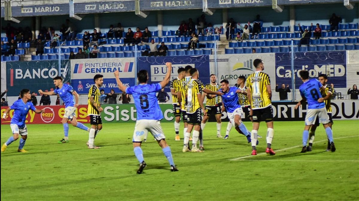 El último tramo del primer tiempo fue más parejo y Almirante comenzó a agarrar más la pelota. A los 38 minutos, jugada preparada y centro de Belluschi, Miño chocó la pelota y cuando todo parecía gol en contra, el arquero Martínez con una gran atajada evitó la caída de su arco. Fue final del primer tiempo en el que la sensación del empate era injusta para el Celeste, que merecía por lo menos irse al descanso en ventaja.