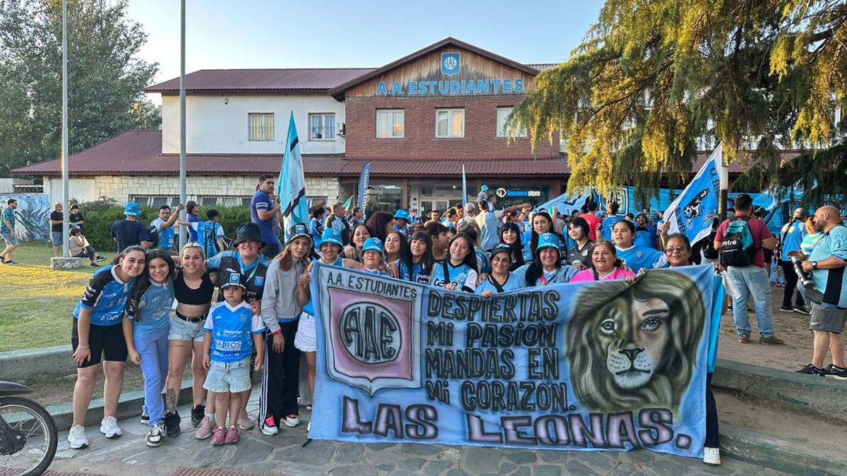 Hinchas y fanáticos del club acompañaron en caravana el colectivo con el plantel de Estudiantes que llegaba a la ciudad.