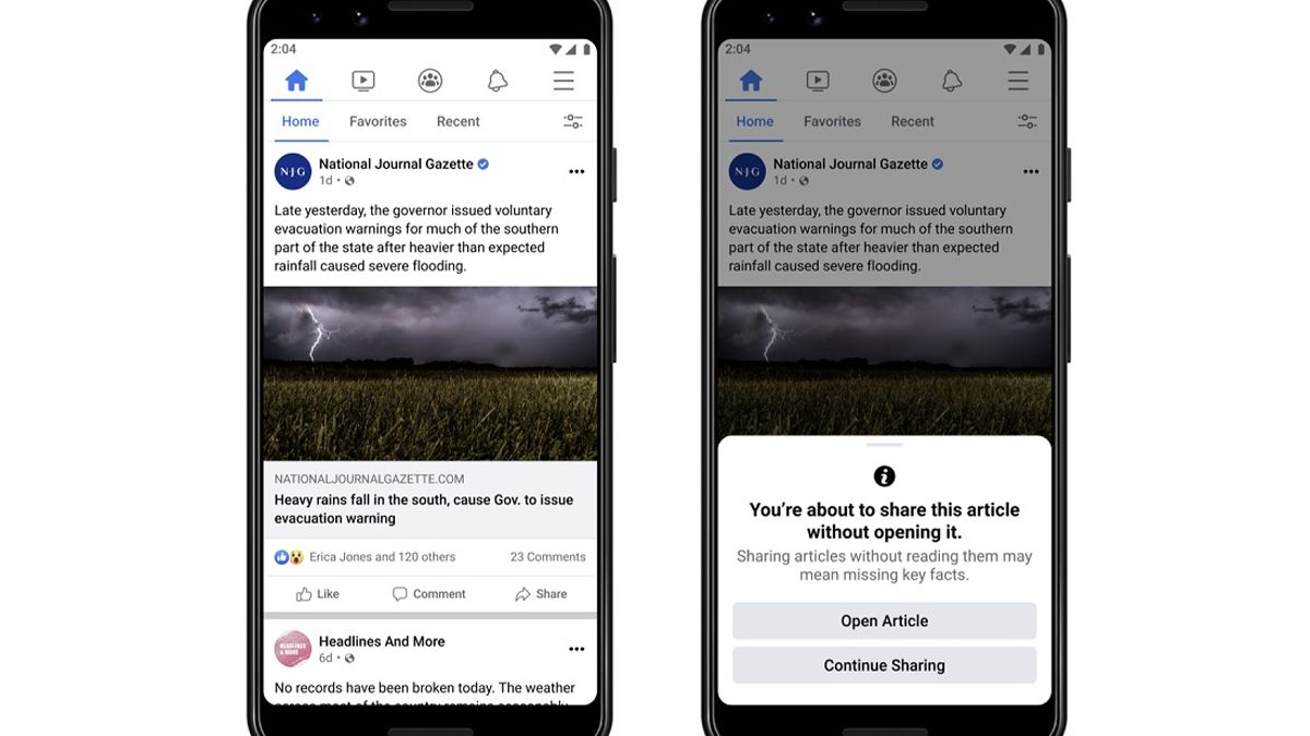 “Estamos probando una forma de promover un intercambio más informado de artículos de noticias. Si vas a compartir el enlace de un artículo de noticias que no has abierto, te mostraremos un mensaje que te anima a abrirlo y leerlo, antes de compartirlo con otros”, explicaron desde Facebook.