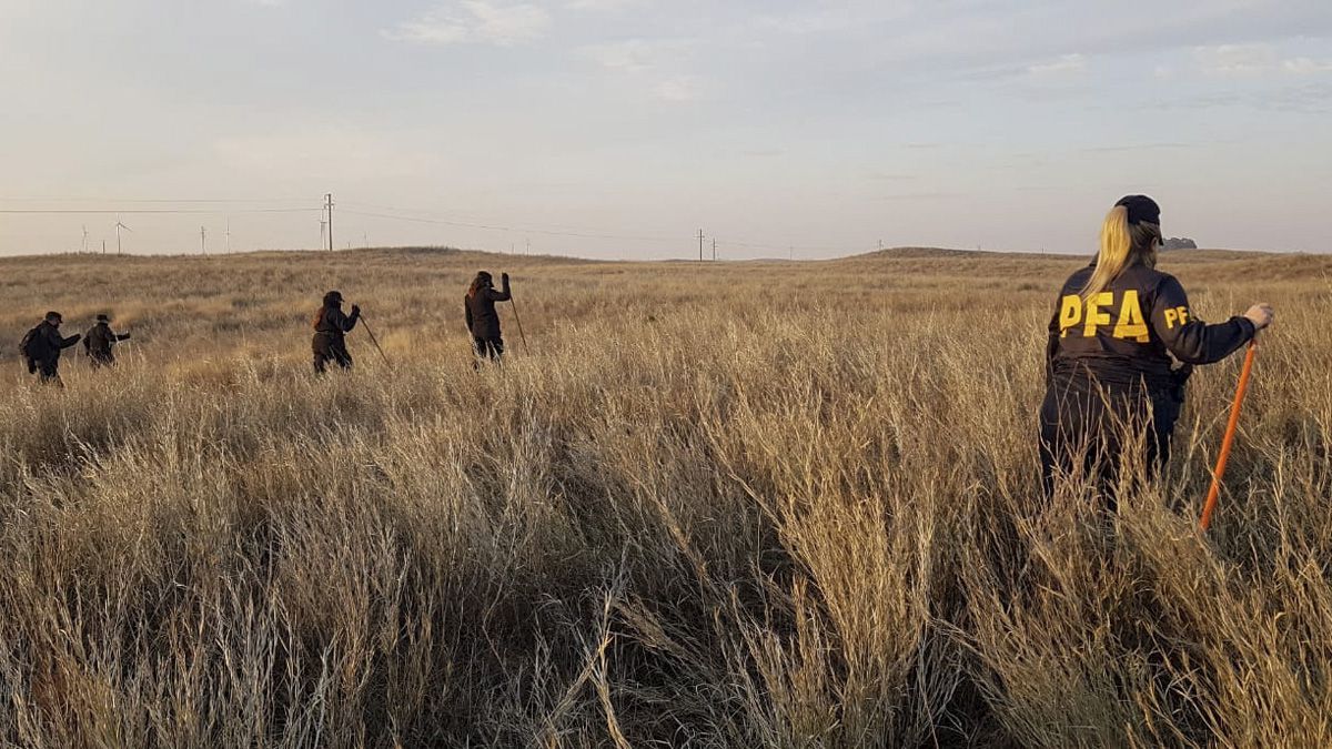 Fuentes policiales informaron a Télam que el hallazgo de la ropa y de la mochila se produjo en un canal ubicado en cercanías de la ruta nacional 3 y a unos 5 kilómetros de Mayor Buratovich.