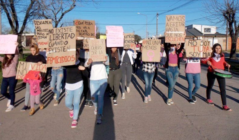Vecinos de Viamonte, principalmente mujeres, marcharon ayer por las calles de la localidad para condenar los recientes femicidios que conmovieron a ese pueblo.