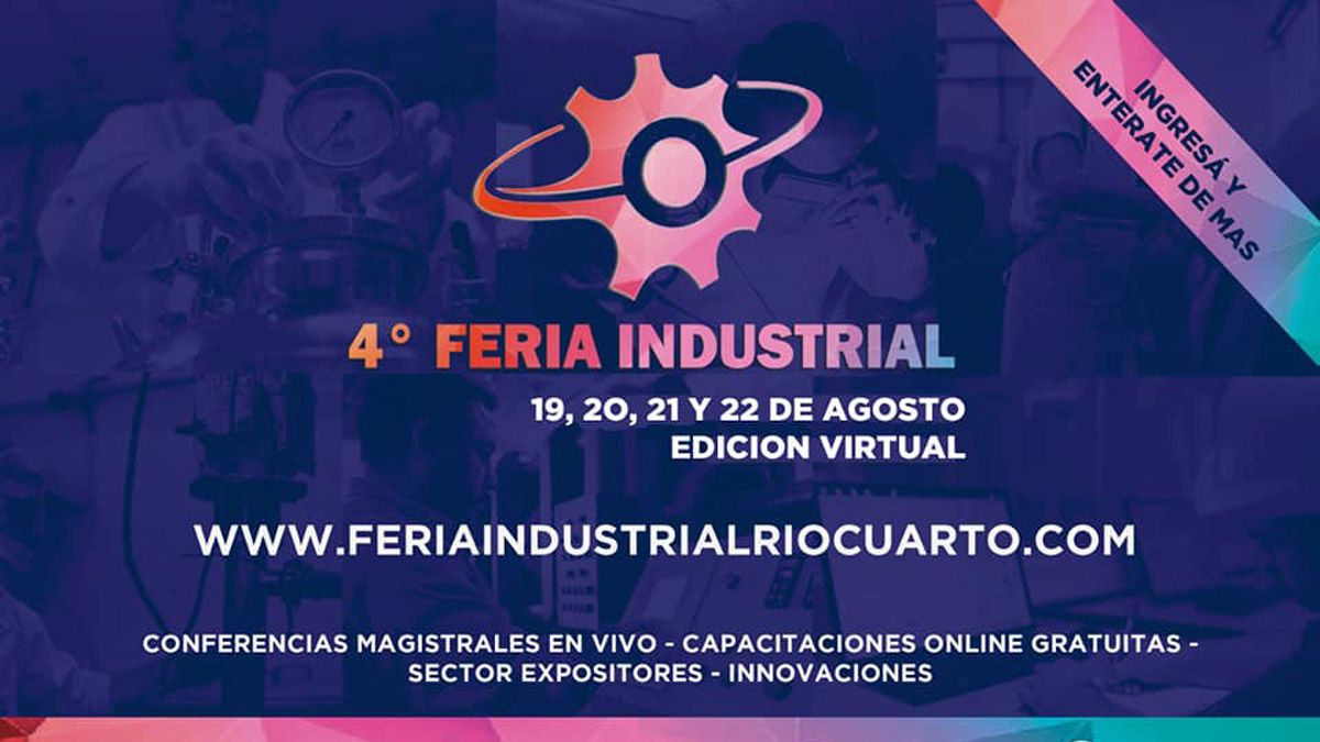 Desde hoy y hasta el 22 de agosto, se lleva a cabo la 4ª Feria Industrial de Río Cuarto, esta vez, bajo la modalidad virtual. Podés seguirla en vivo a través de los canales previstos en Youtube o participar vía Zoom.