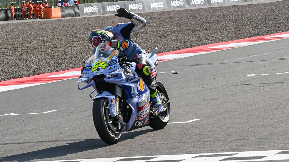 El triunfo de Fermín Aldeguer (Ducati) fue de punta a punta, estableciendo un dominio impresionante, que terminó con cerca de 7 segundos de ventaja sobre Pedro Acosta (KTM) y tercero finalizó Alex Márquez (Ducati), asegurandose el subcampeonato mundial y el de piloto privado.