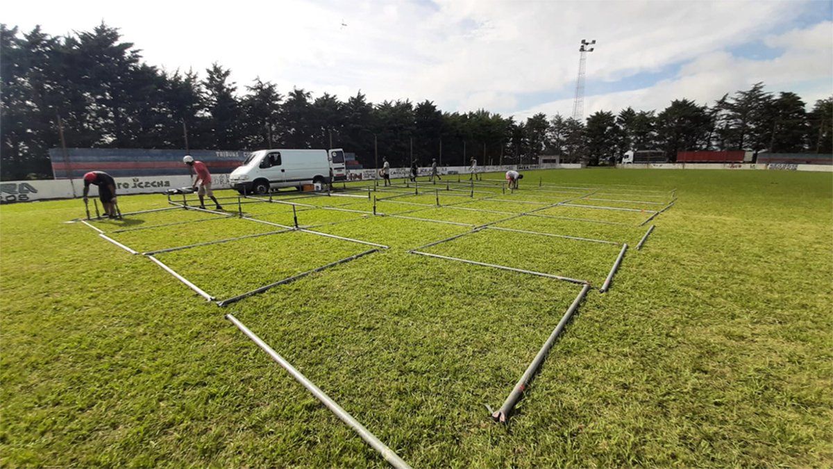 En las primeras horas del martes comenzó el armado del gran escenario por el que pasarán todas las figuras que componen la grilla del primer Festival Atahualpa, que se llevará a cabo los días 28, 29 y 30 de enero en General Cabrera.