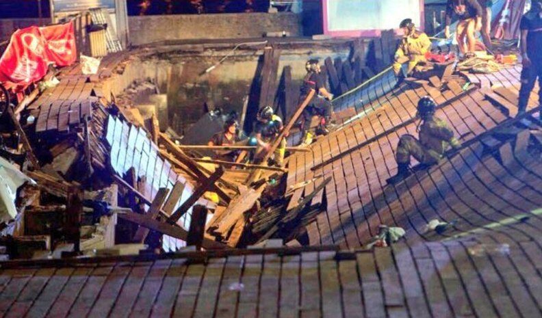 Al quebrarse el muelle, de unos 30 metros de largo y 10 de ancho, las personas cayeron amontonándose unas sobre otras, mientras otros acabaron en el agua, generando momentos de pánico.