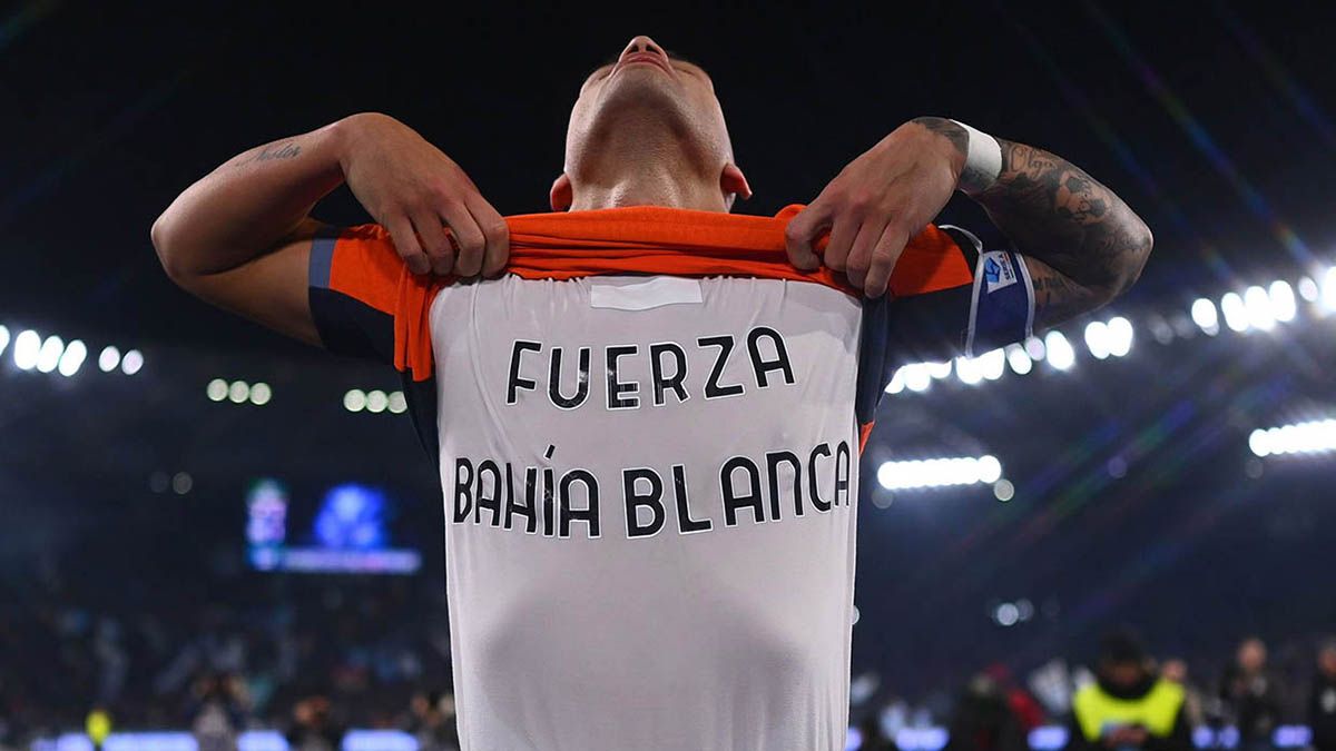 Luego de anotar, el Toro Martínez se levantó la camiseta y mostró una leyenda que decía "fuerza Bahía Blanca", en referencia a la tragedia que sufrió su ciudad natal en la que murieron 13 personas a causa del temporal que azotó a gran parte de la provincia de Buenos Aires.