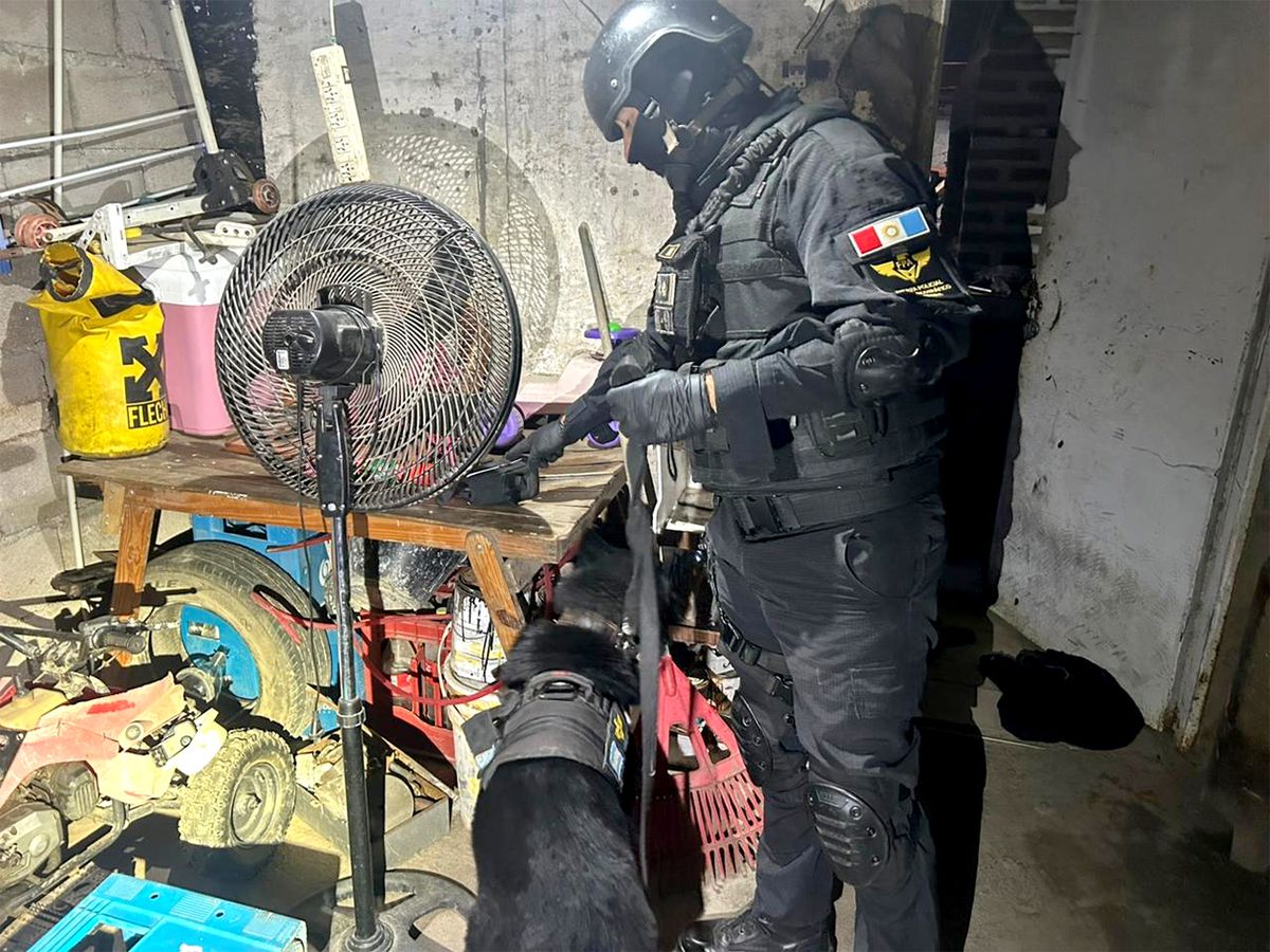 El despliegue operativo se llevó a cabo con las irrupciones de cinco domicilios sobre calle Miguel Ángel, a metros del puente del Bicentenario Intendente Julio Humberto Mugnaini.
