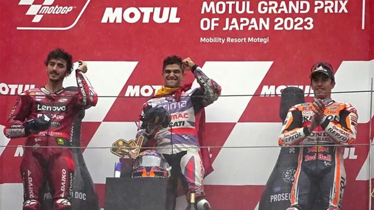 El español Jorge Martín (Ducati) ganó este domingo el Gran Premio de Motociclismo de Japón y recortó a sólo tres puntos la distancia del líder del MotoGP, el campeón italiano Francesco Bagnaia (Ducati), cuando restan seis carreras.