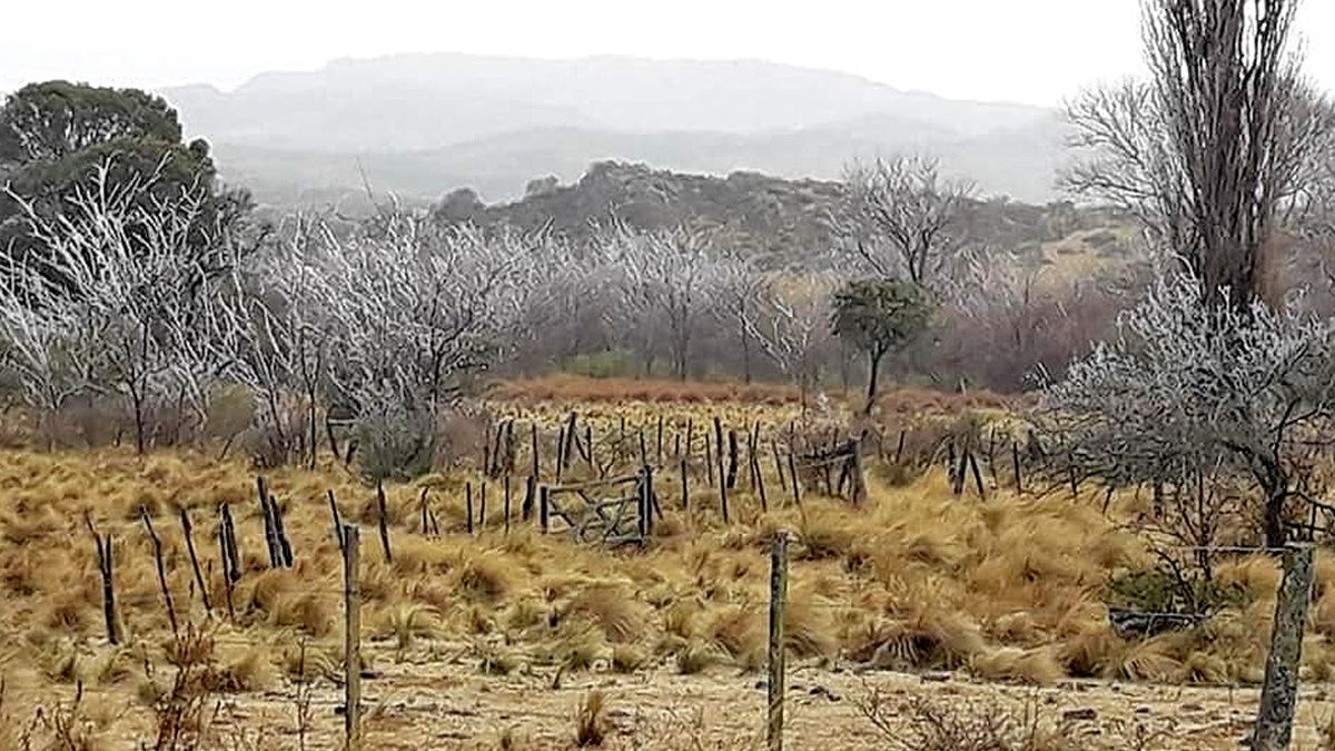 Vecinos de la histórica Posta Los Nogales capturaron imágenes donde la copa de los árboles quedaron cubiertas de una cristalina capa de hielo. El fenómeno fue de unos pocos minutos, lo suficiente para emblanquecer árboles, pajonales y sierras.