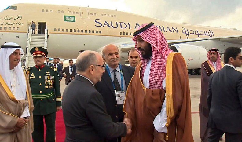 El príncipe heredero saudita arribó en la mañana de este miércoles al Aeropuerto Internacional de Ezeiza "Ministro Pistarini", en donde fue recibido por el canciller, Jorge Faurie: luego fue trasladado bajo un fuerte operativo de seguridad a la sede diplomática del país asiático en el barrio porteño de Palermo, en donde se hospedará.