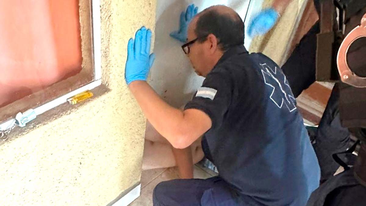 Alrededor de las 9, un vecino avisó al 911 sobre la presencia de un joven de 22 años enganchado en la parte inferior de la abertura a la altura del cuello en la entrada de su departamento, ubicado en calle Colombia Oeste al 200.