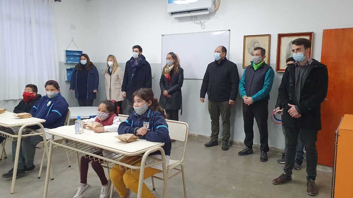 Con sus guardapolvos blancos, barbijos puestos y respetando la distancia, los 14 alumnos que asisten a la institución pudieron retomar la presencialidad. Con una sonrisa en sus rostros, los niños compartieron el emotivo acto de reapertura junto a docentes, papás, directivos, autoridades municipales, provinciales y educativas.