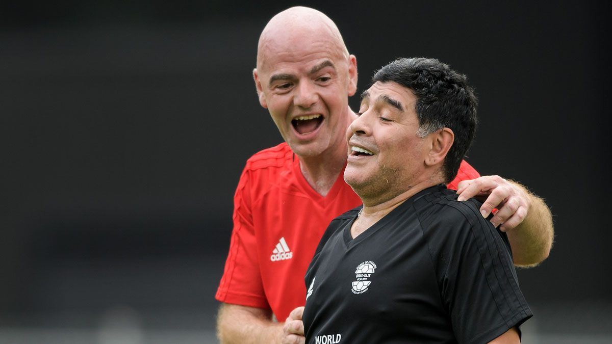 La llegada de Infantino a la presidencia de la FIFA, en 2016, permitió un acercamiento de Maradona con la entidad y fue elegido como embajador.