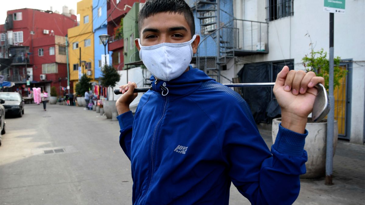 "Mi padre biológico lo conocí pero nunca tuve mucha relación por problemas que tuvo con las drogas, pero sí tengo buena relación con la familia, con mi tía, mi abuela, que viven acá a mitad de cuadra", dice Dylan a Télam desde la cancha de fútbol ubicada en el acceso principal al barrio, frente a la terminal de Ómnibus de Retiro.