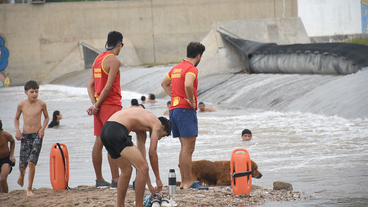 En el inicio del mencionado operativo, estaban los guardavidas cumpliendo con las tareas de prevención y evitando que los bañistas corran peligro.