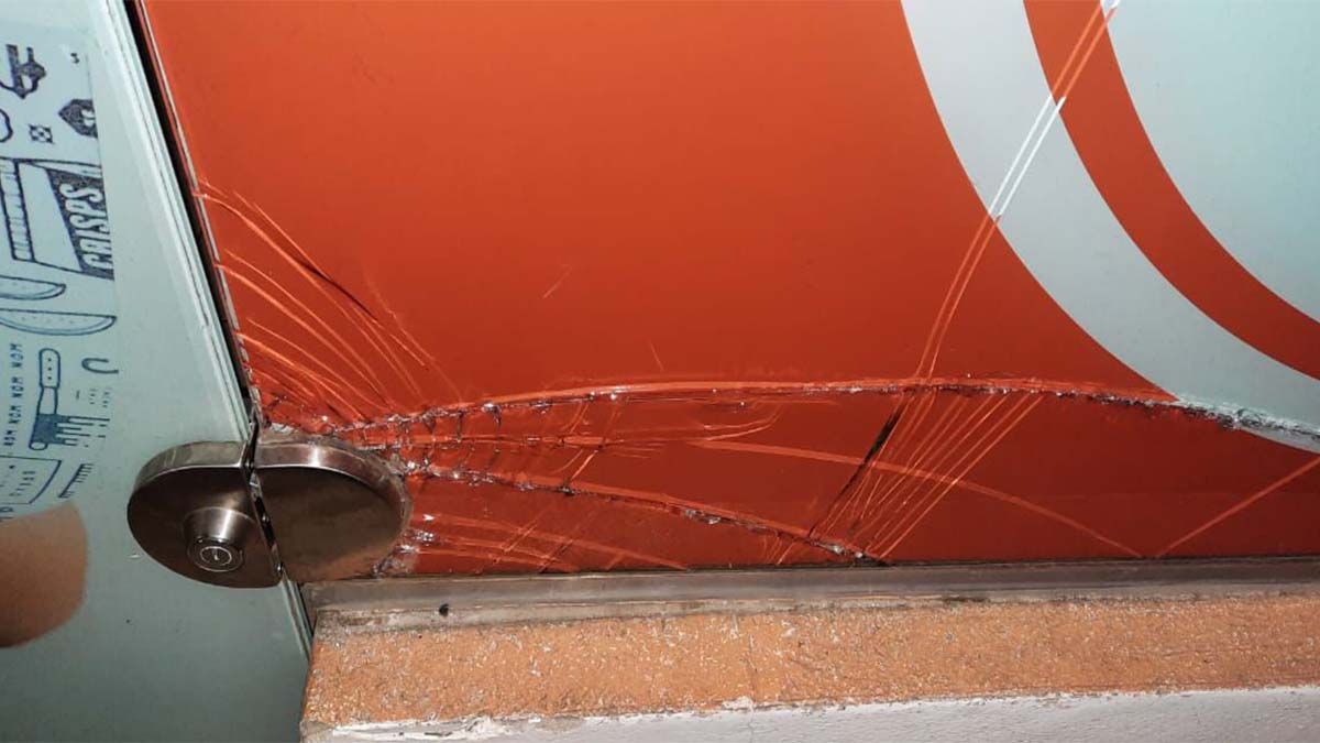 Ante esa situación, se patrulla la zona y se escucha una explosión de vidrios en otro local ubicado en la misma calle, pero a la altura del 800. Tras lo cual, observan al sujeto saliendo del lugar con distintos elementos, por lo que se da aviso a la Policía para que intervenga.