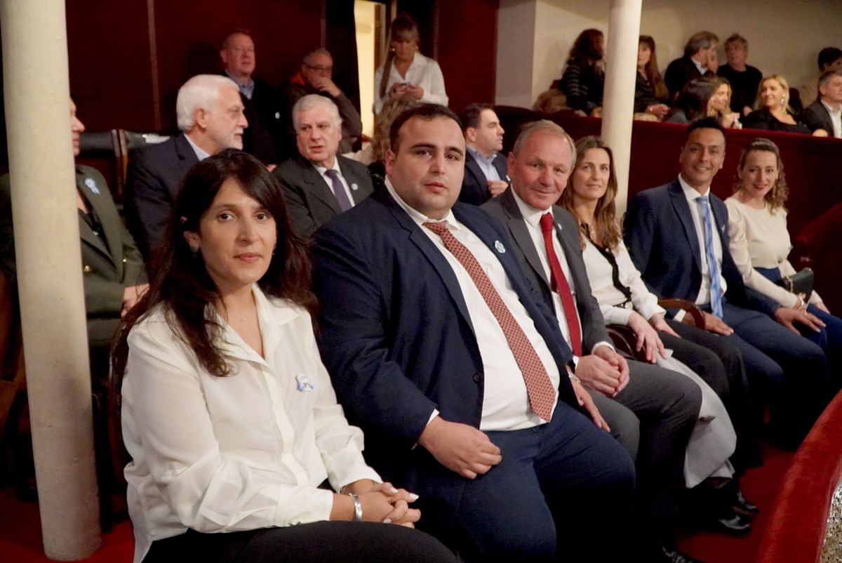 Los intendentes Guillermo De Rivas, Gianfranco Lucchesi y Maximiliano Rossetto presidieron anoche la gala especial previa a la Gesta de Mayo en el Teatro, con la actuación del Ballet Abriendo Surcos, que presentó un cuadro de danza alusivo a la fecha patria.