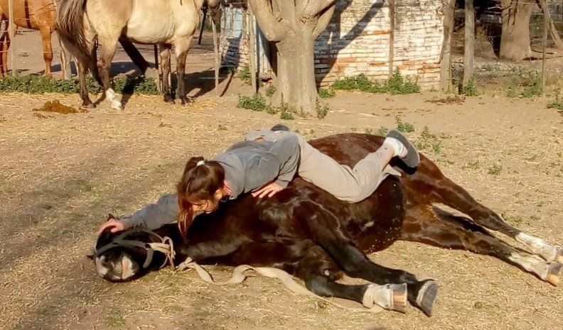 "Me paseo por entre medio de las patas y las manos de la yegua. Me ubico abajo de la panza y después incorporamos hacer la vertical sobre el animal y otras pruebas más con el caballo acostado", enumeró Vicky a punto de ponerse una boina negra porque era el momento de las fotos para el diario.