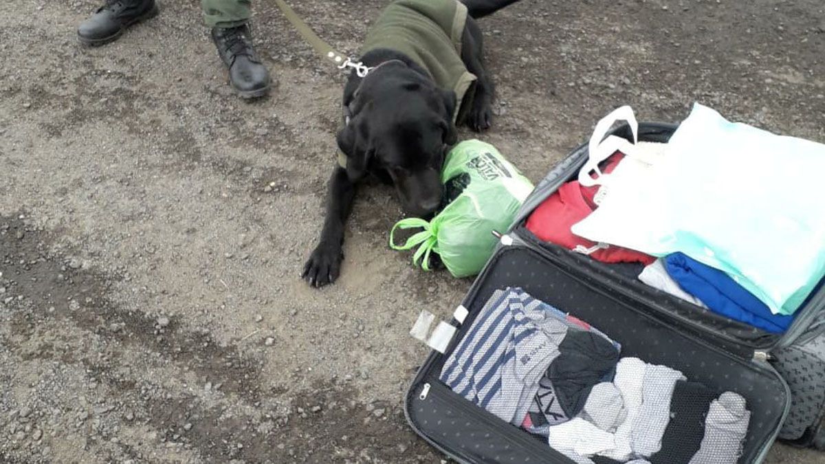 "Durante la requisa los funcionarios observaron la reacción del perro antinarcóticos al pasar por uno de los equipajes, como lo hace habitualmente ante la presencia de estupefacientes", explicaron.
